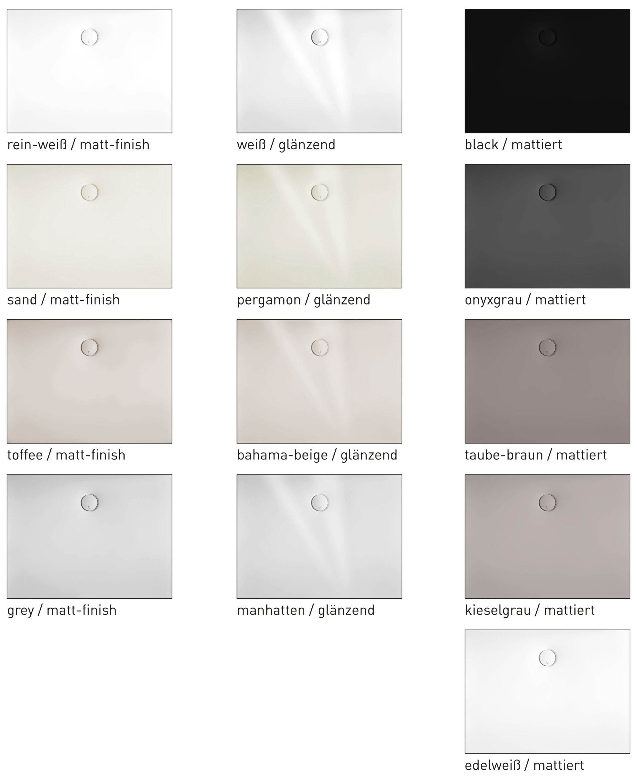 Farben und Oberflächen für Duschflächen und Duschwannen aus Acryl nach DIN 263
